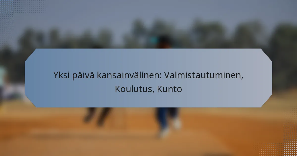 Yhden päivän kansainvälisen (ODI) kriketin valmistautuminen vaatii kattavaa lähestymistapaa, joka yhdistää fyysisen harjoittelun, henkisen valmennuksen ja strategisen analyysin. Pelaajat osallistuvat kohdennettuihin harjoitusohjelmiin, jotka parantavat heidän taitojaan ja kuntoaan, varmistaen, että he ovat ottelukunnossa rajoitetun oversin kriketin ainutlaatuisiin haasteisiin. Lisäksi vahva keskittyminen kuntoon, ravitsemukseen ja palautumiseen on olennaista optimaalisen suorituskyvyn ja vammojen ehkäisemisen kannalta.