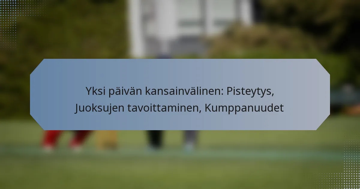 Yhden päivän kansainvälisissä otteluissa (ODI) juoksunopeudet, juoksujen tavoittaminen ja kumppanuudet näyttelevät keskeisiä rooleja ottelun dynamiikan muokkaamisessa. Juoksunopeudet osoittavat, kuinka nopeasti joukkueet keräävät juoksuja, kun taas onnistuneet juoksujen tavoittamiset vaativat strategisia säätöjä perustuen tavoitepisteisiin ja olosuhteisiin. Lisäksi avainkumppanuudet lyöjien välillä voivat suuresti vaikuttaa otteluiden lopputulokseen, mikä tekee yhteistyöstä olennaista joukkueen tavoitteiden saavuttamiseksi.