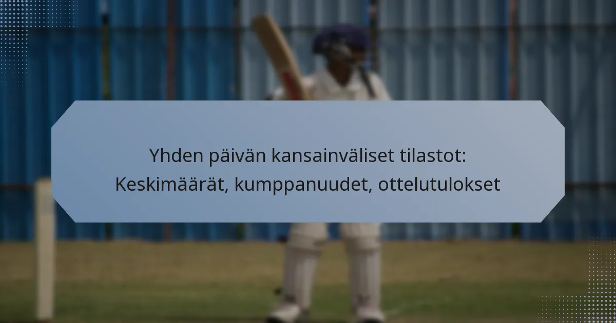 Yhden päivän kansainväliset ottelut (ODI) ovat tärkeä formaatti kriketissä, jossa pelaajien tilastot, kuten lyönti- ja heittokeskiarvot, tarjoavat näkemyksiä yksittäisten suoritusten ja joukkueen dynamiikan ymmärtämiseen. Lyöntikeskiarvot osoittavat pelaajan johdonmukaisuuden, kun taas heittokeskiarvot heijastavat heittäjän tehokkuutta juoksujen rajoittamisessa. Lisäksi lyöjien väliset kumppanuudet ovat kriittisiä, sillä ne voivat suuresti vaikuttaa ottelun lopputulokseen määrittämällä pistepotentiaalin ja koko joukkueen menestyksen.
